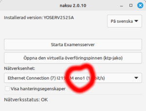 - Starta Naksu och kontrollera den valda examensnätsenhetens beteckning. Beteckningarna för kabelanslutna nätverksenheter börjar med bokstäverna en.